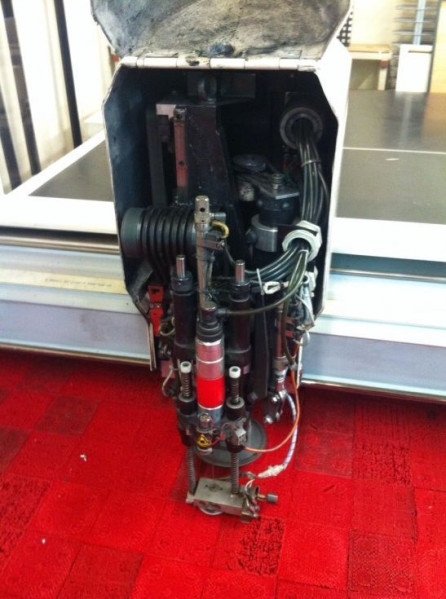Equipo completo de corte asistido por ordenador, maquina con sistema de avance automático, con aspiración incorporado para la sujeción del tejido, afilado automático de la cuchilla, sistema de generación de vacío, control variable de velocidad de la cuchilla, alta eficiencia de vacío con bajo consumo de energía y de ruidos y cinta de evacuación del tejido.